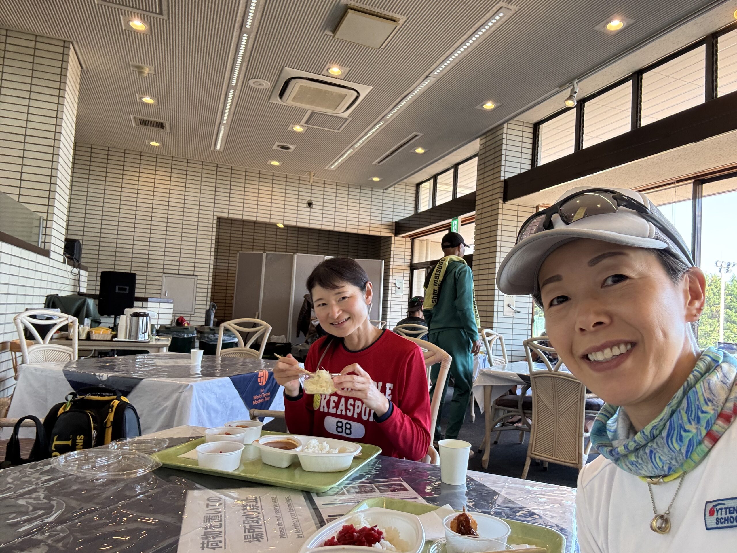 プレイヤーズラウンジで男子の選手達が昼食をとっていたので、