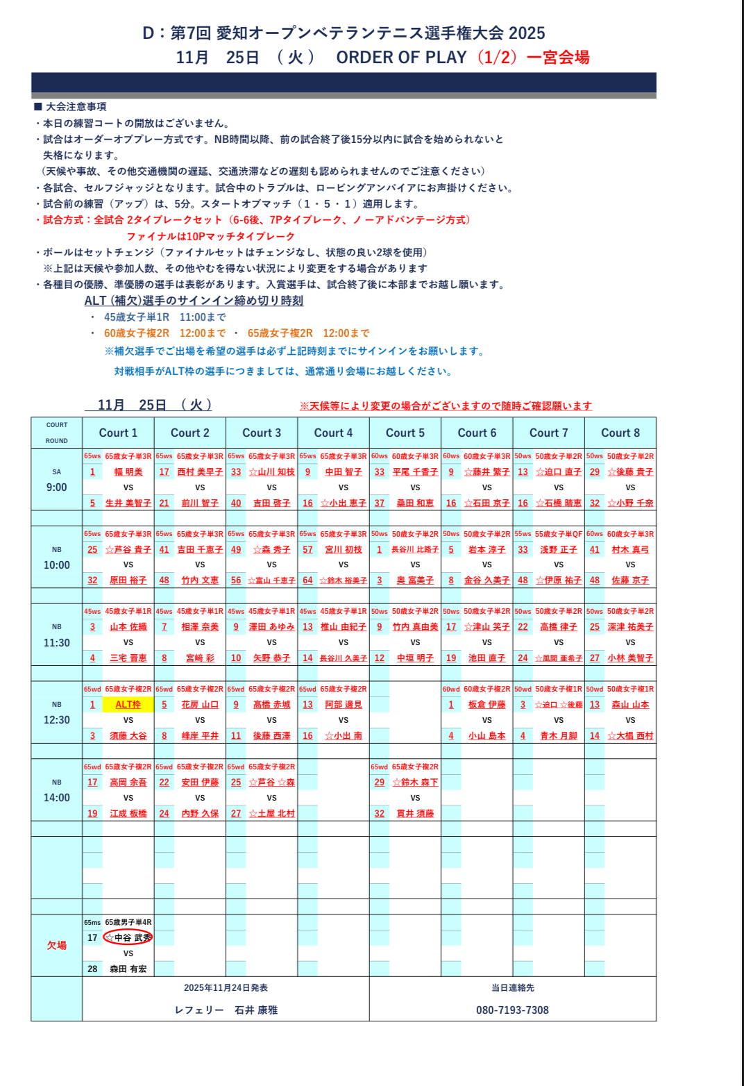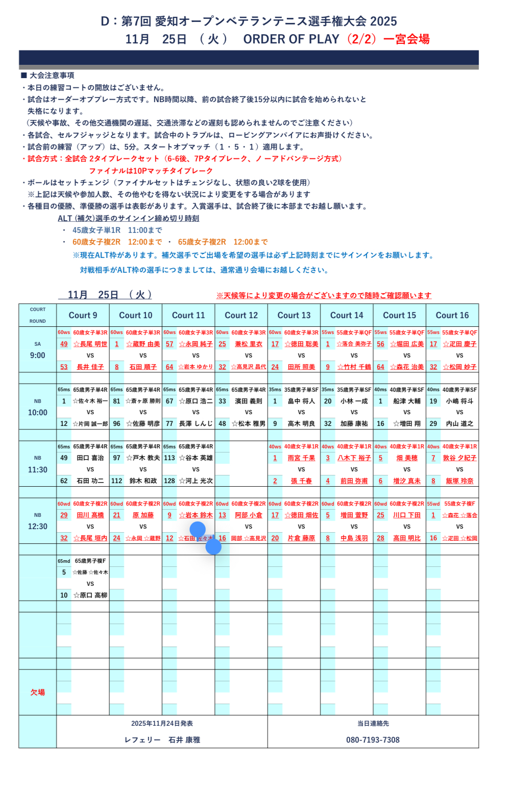 11月25日(火)愛知オープンベテランのオーダーです